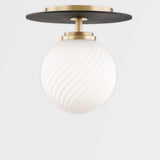 Ellis 1-Light Semi Flush in Aged Brass/Black 7L x 7W x 7.25H