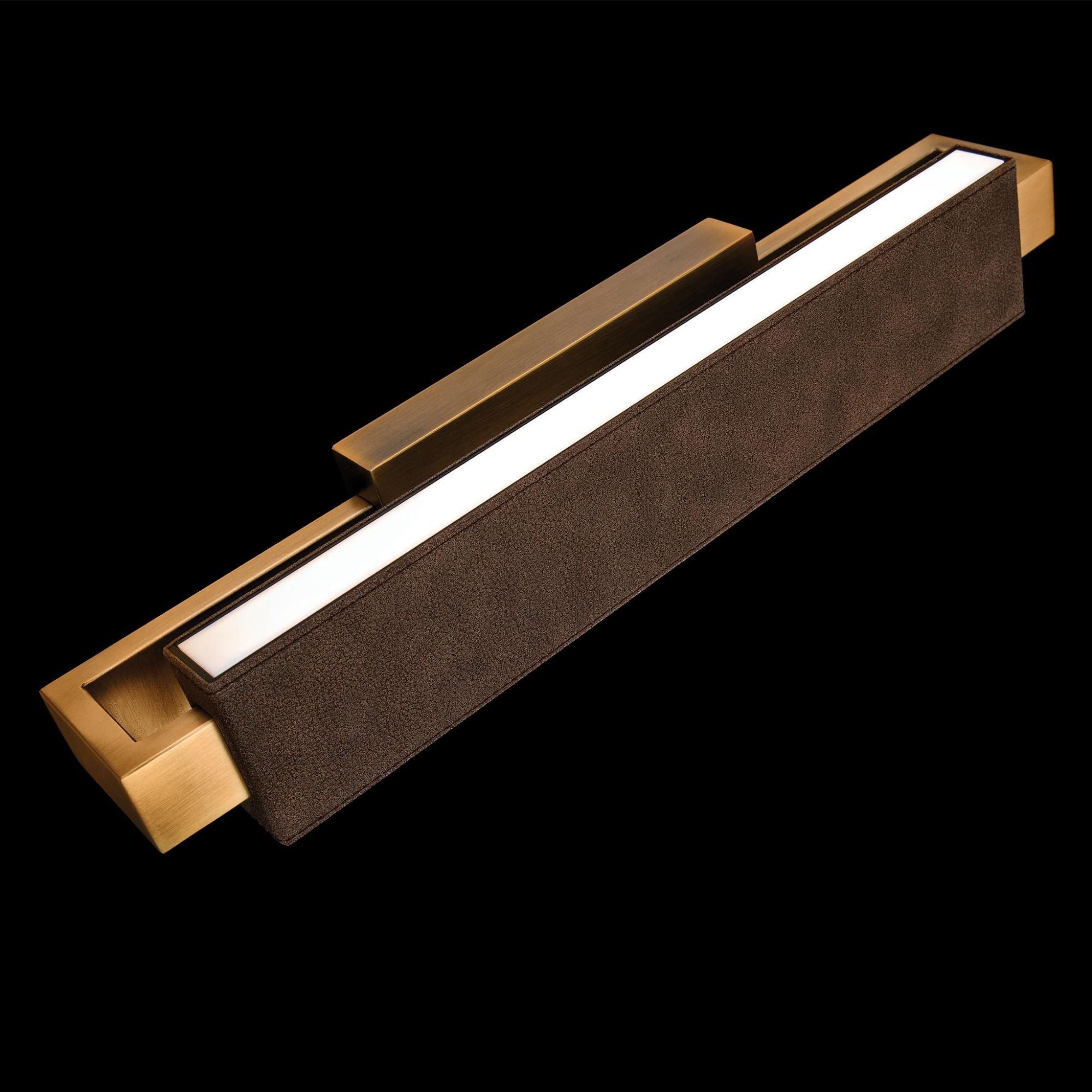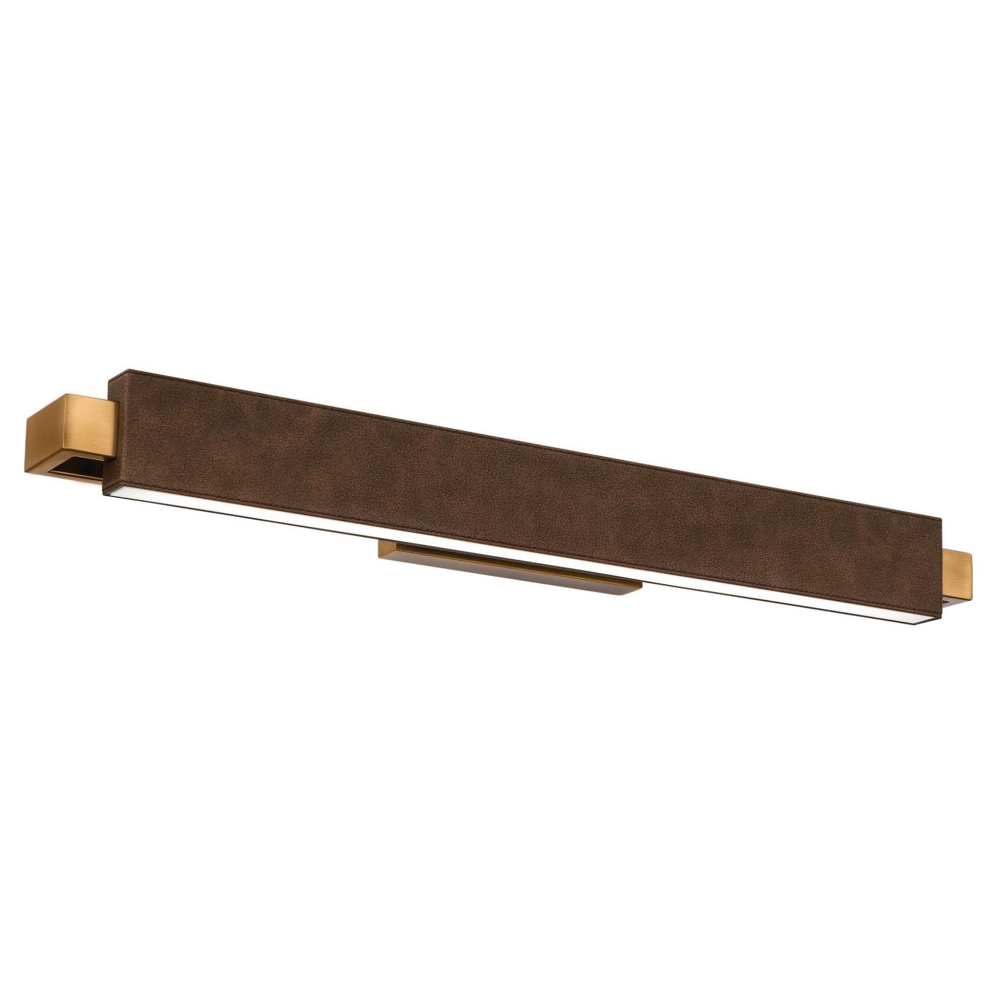 Kinsman 29in LED Bathroom Vanity or Wall Light 3-CCT 2700K-3000K-3500K in Bomber Brown Leather with Aged Brass Hardware