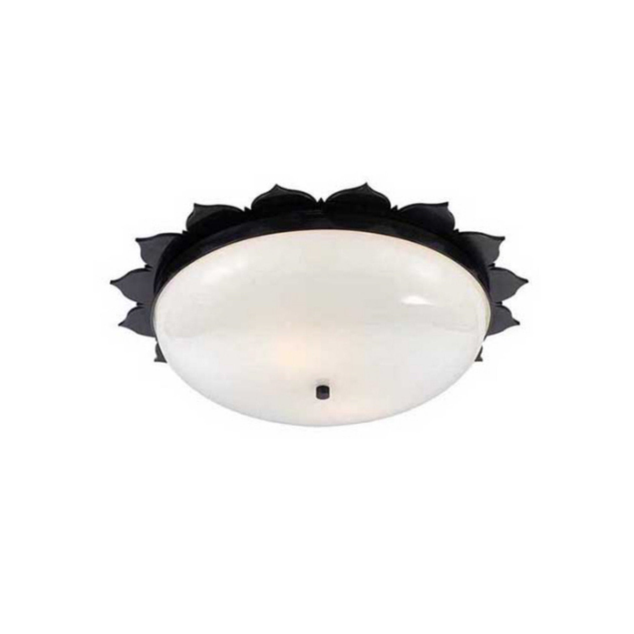 Alexa Hampton Rachel Large Flush Mount in Gun Metal with White Glass Ceiling Light W18" x H5"