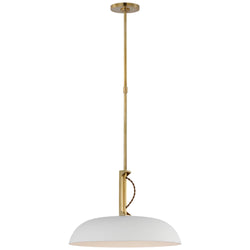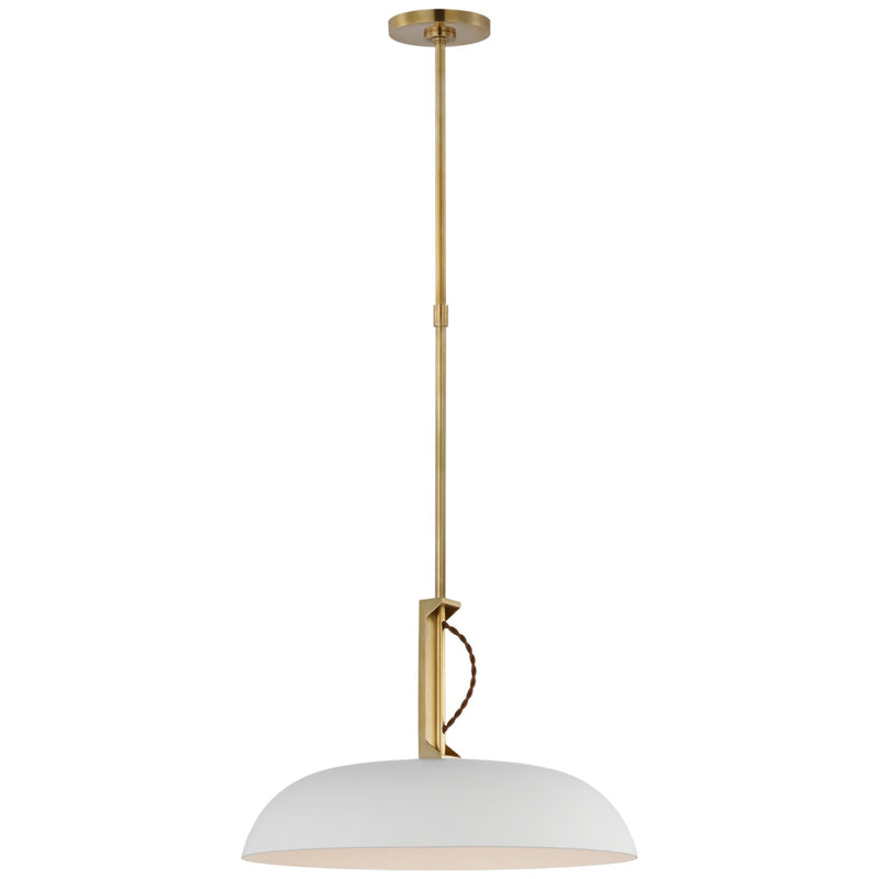 Amber Lewis Cyrus 19" Pendant in Hand-Rubbed Antique Brass and White with White Glass Ceiling Light W18.5"