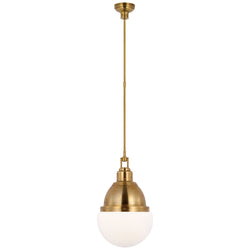 Amber Lewis Bernard 14" Pendant in Hand-Rubbed Antique Brass with White Glass Ceiling Light W13.75"