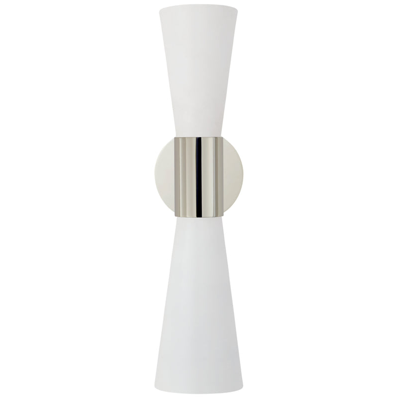 AERIN Clarkson Medium Narrow Sconce in Polished Nickel and White Wall Light W4.5" x H17.75"