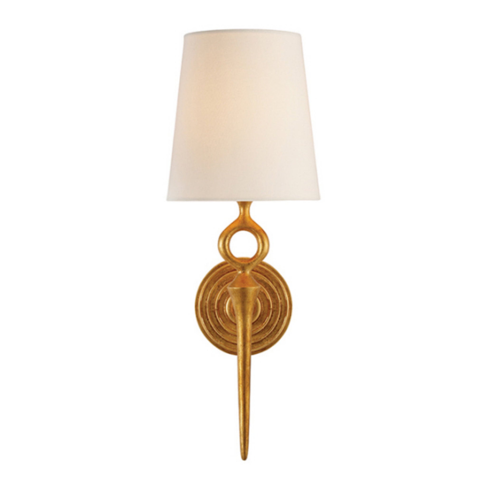 AERIN Bristol Single Sconce in Gilded with Linen Shade Wall Light W7" x H18"
