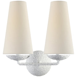 AERIN Fontaine Double Sconce in Plaster with Linen Shades Wall Light W13.25" x H14.25"