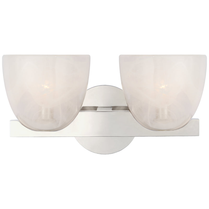 AERIN Carola Double Sconce in Polished Nickel with White Strie Glass Wall Light W14" x H7.25"