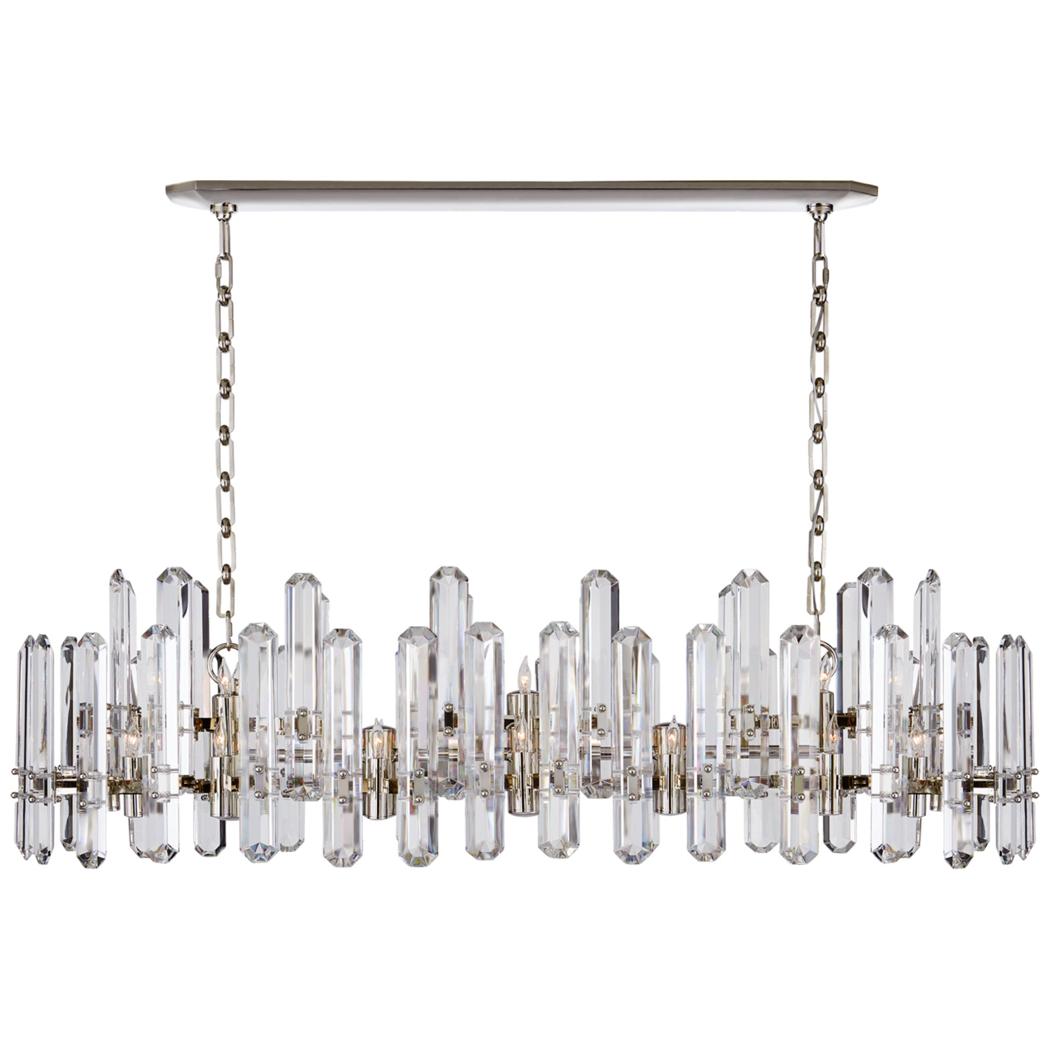 AERIN Bonnington Large Linear Chandelier in Polished Nickel with Crystal Ceiling Light W55" x 24.5" x H15.25"