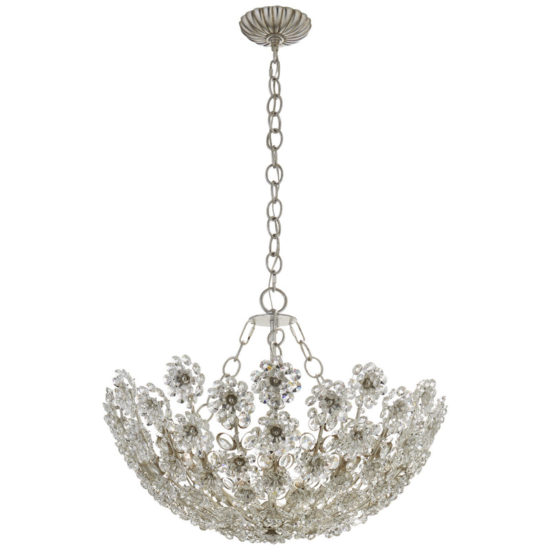 AERIN Claret Short Chandelier in Burnished Silver Leaf with Crystal Ceiling Light W27.5" x H21.5"