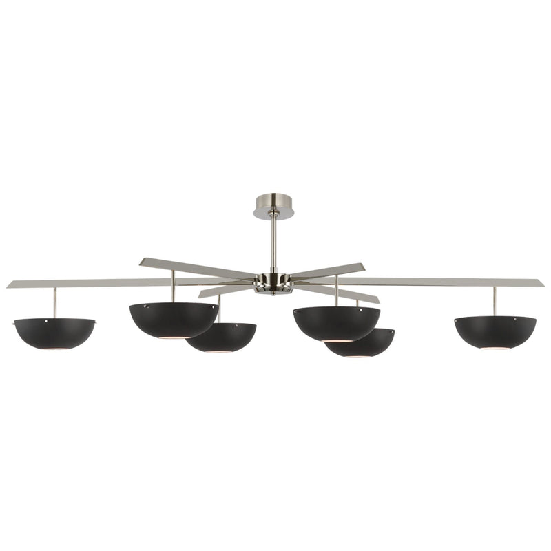 AERIN Valencia Grande Six Light Chandelier in Polished Nickel with Matte Black Ceiling Light W66.5"