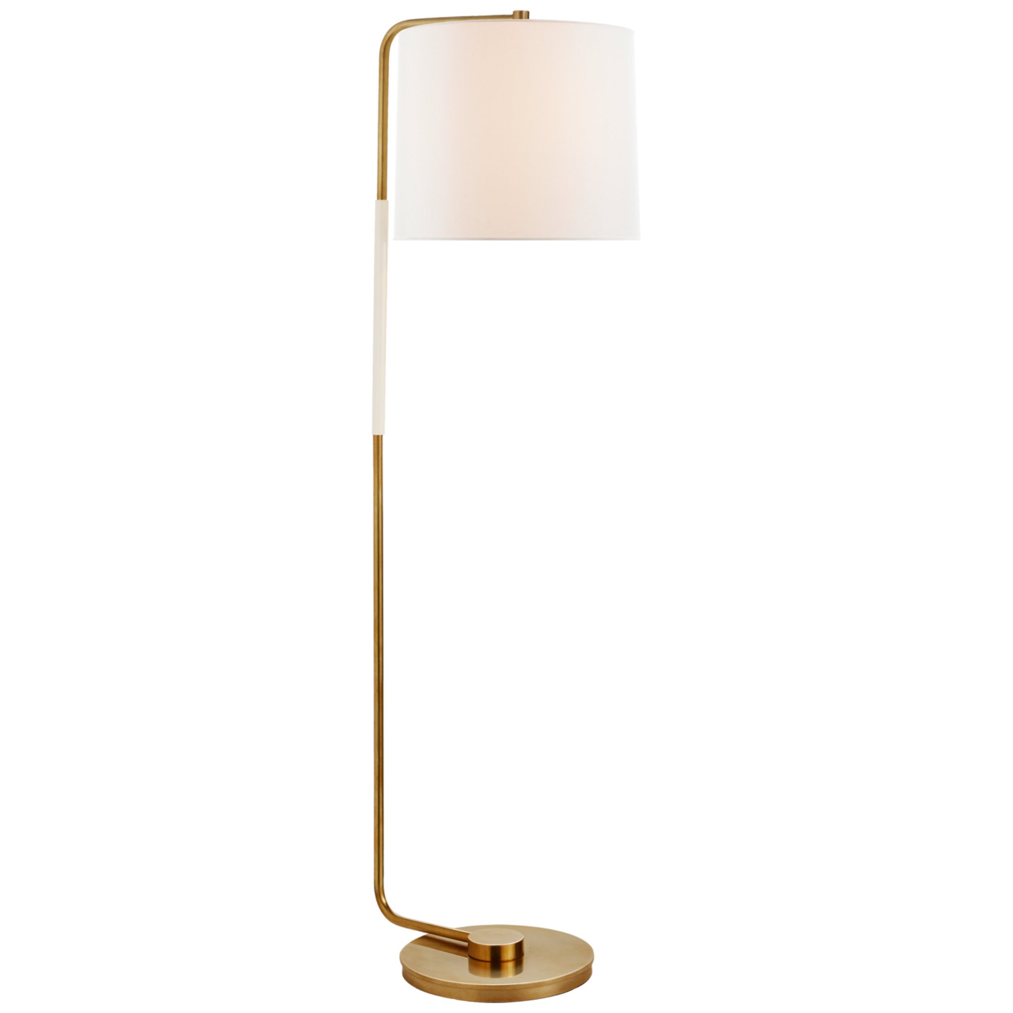 Barbara Barry Swing Articulating Floor Lamp in Soft Brass with Linen Shade W13.5" x H54.75"