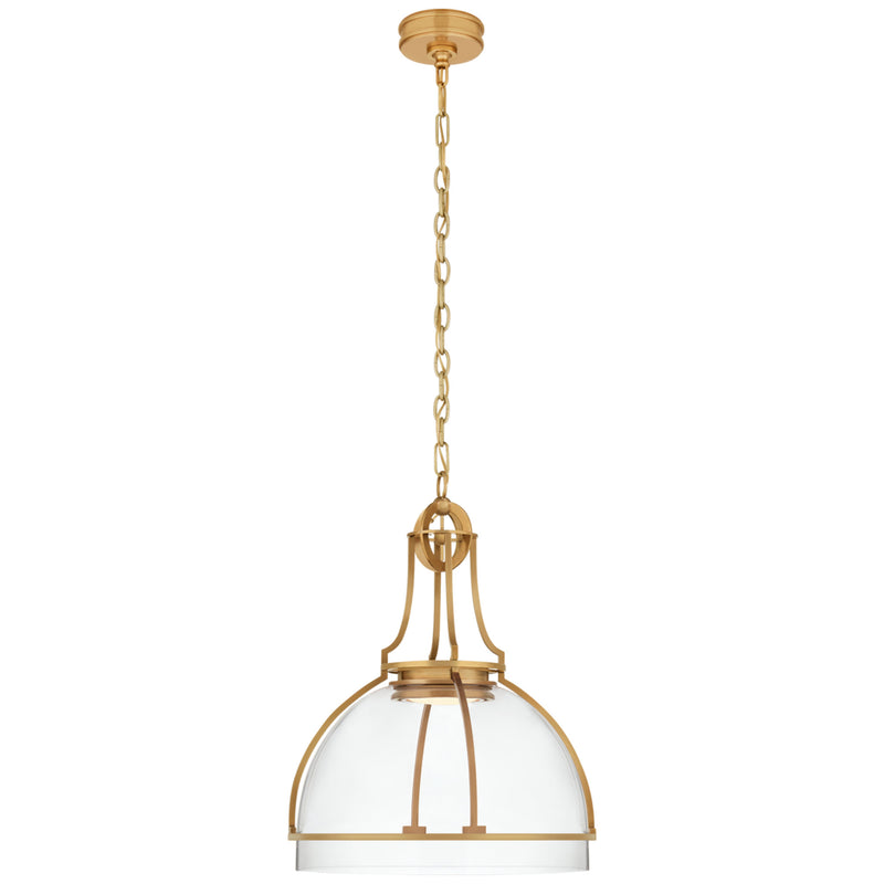 Chapman & Myers Gracie Large Dome Pendant in Antique-Burnished Brass with Clear Glass Ceiling Light W19" x H24.5"