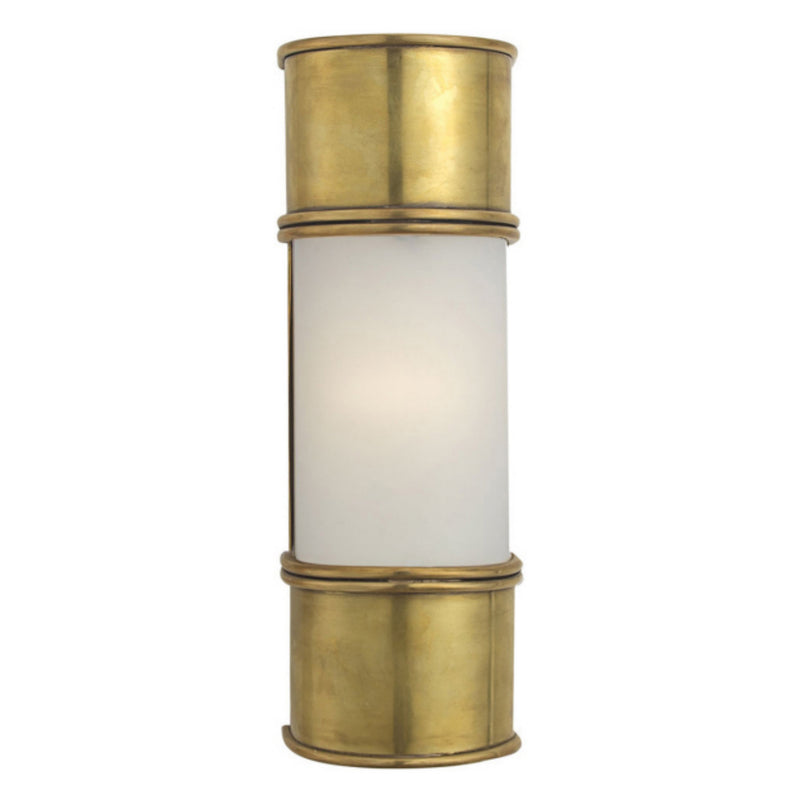 Chapman & Myers Oxford 12" Bath Sconce in Antique-Burnished Brass with Frosted Glass Wall Light W3.75" x H12"
