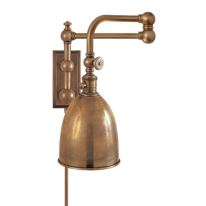Chapman & Myers Pimlico Double Swing Arm in Antique-Burnished Brass with Antique-Burnished Brass Shade Wall Light W11" x H16"