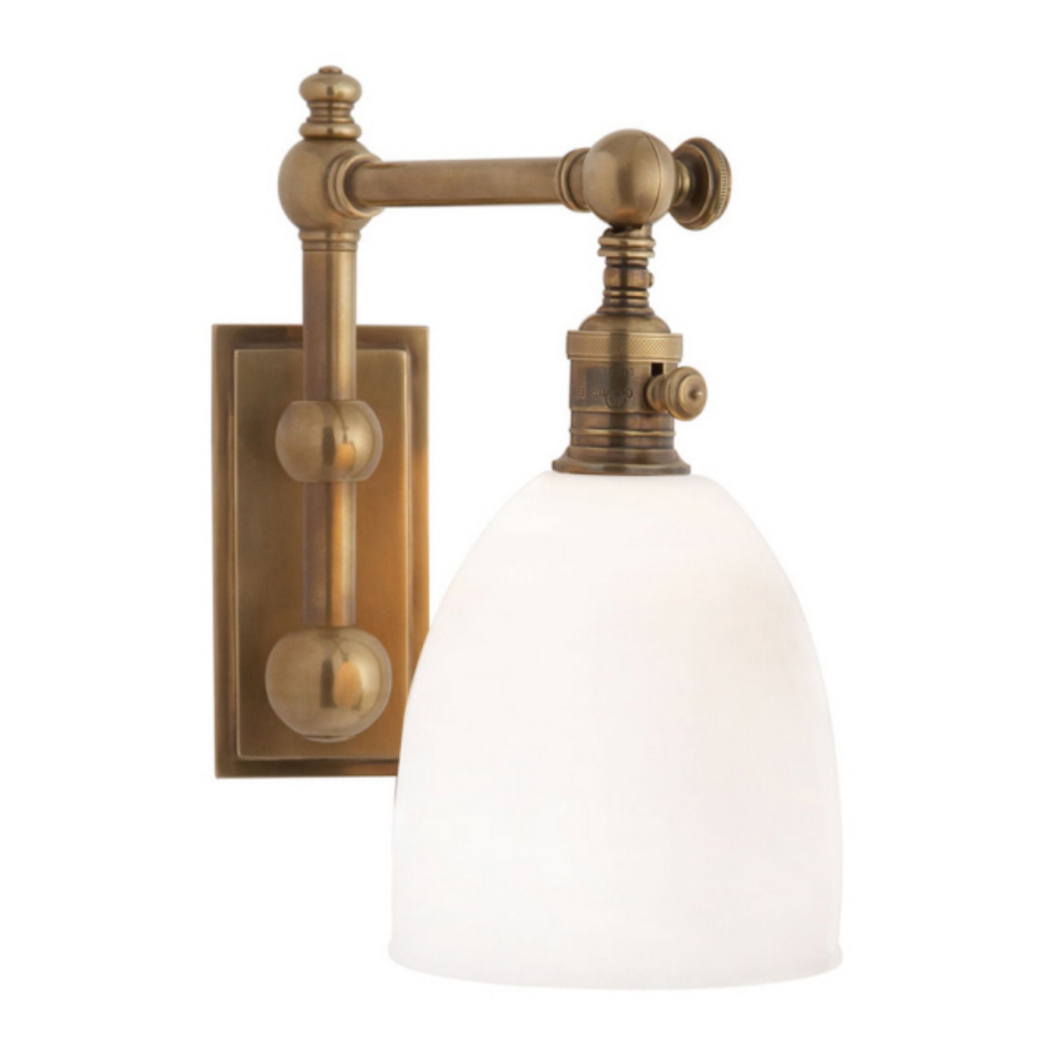 Chapman & Myers Pimlico Single Light in Antique-Burnished Brass with White Glass Wall Light W6" x H11"
