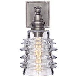 Chapman & Myers Covington Sconce in Antique Nickel with Clear Ribbed Wide Glass Wall Light W6.5" x H12.75"