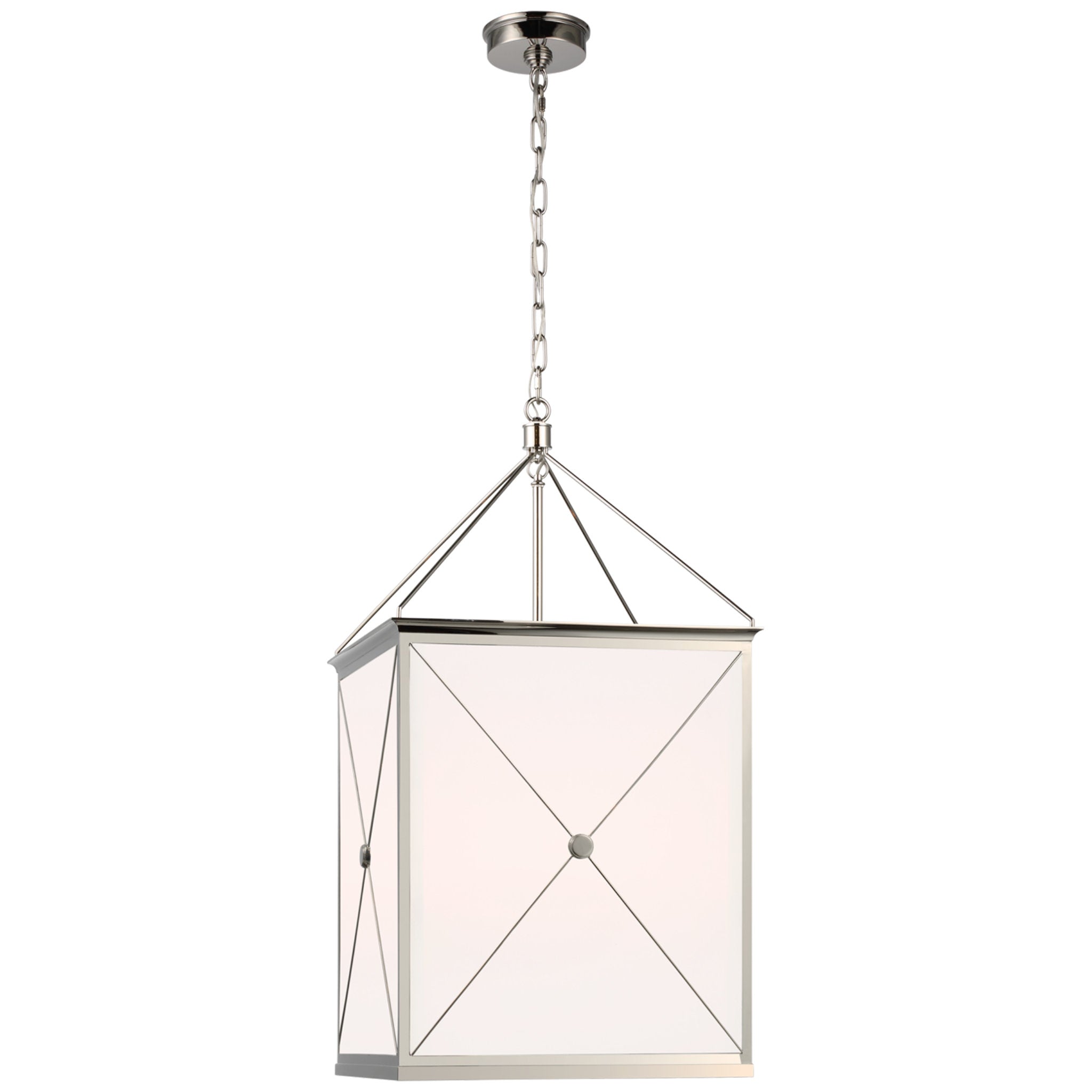 Julie Neill Rossi Medium Lantern in Polished Nickel with White Glass Ceiling Light W18" x H33.5"