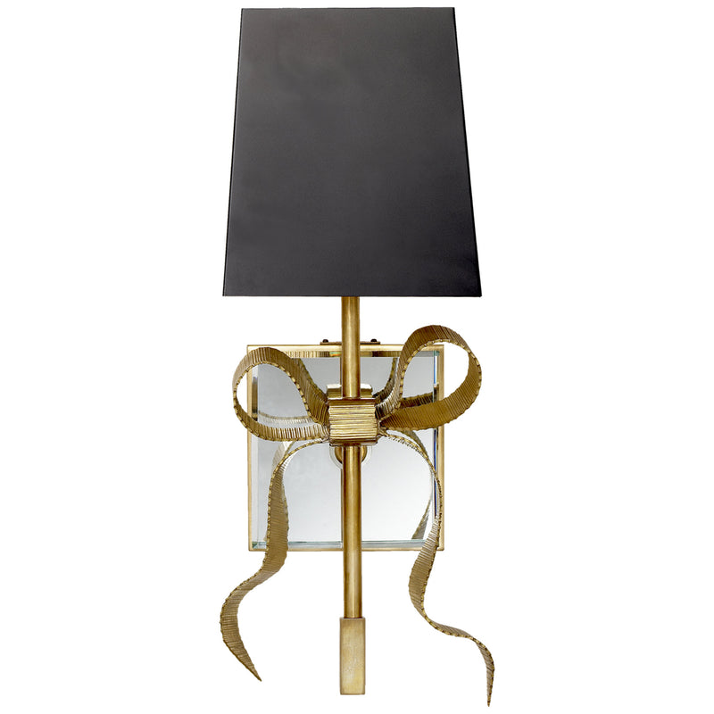 kate spade new york Ellery Gros-Grain Bow Small Sconce in Soft Brass with Matte Black Shade Wall Light W5" x H13.5"