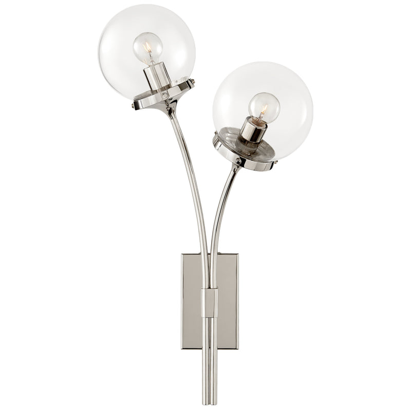 kate spade new york Prescott Right Sconce in Polished Nickel with Clear Glass Wall Light W12" x H20.5"