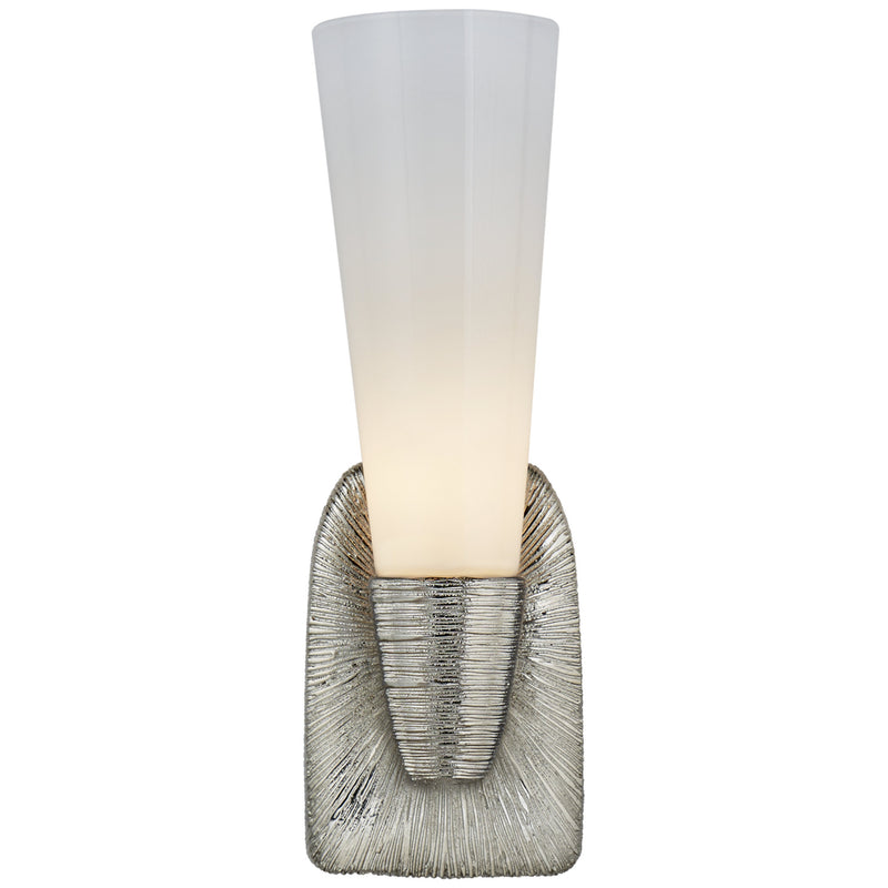 Kelly Wearstler Utopia Small Single Bath Sconce in Polished Nickel with White Glass Wall Light W4.75" x H14"