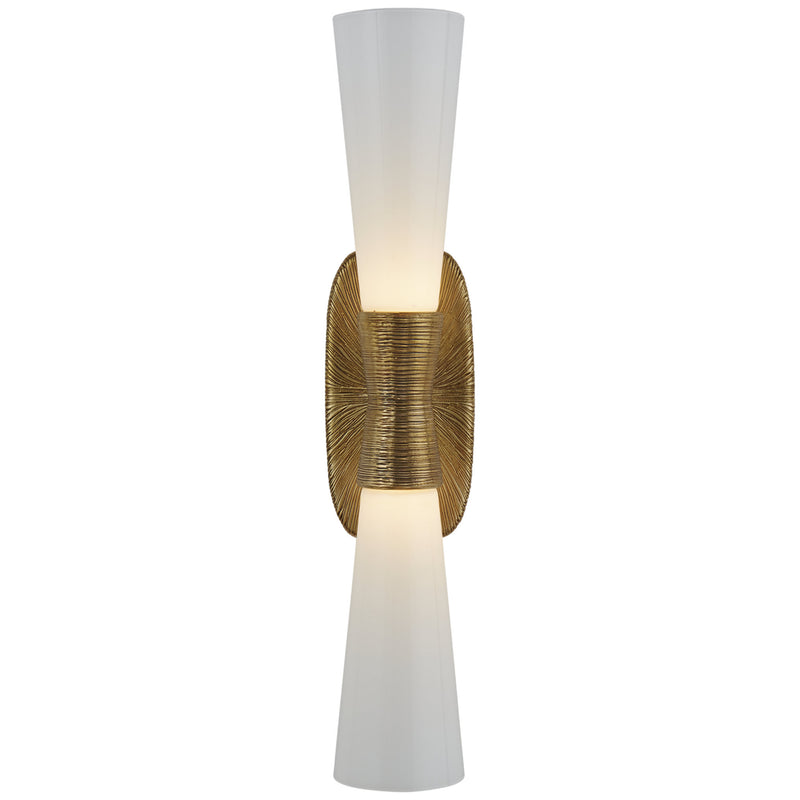 Kelly Wearstler Utopia Large Double Bath Sconce in Gild with White Glass Wall Light W4.75" x H23"
