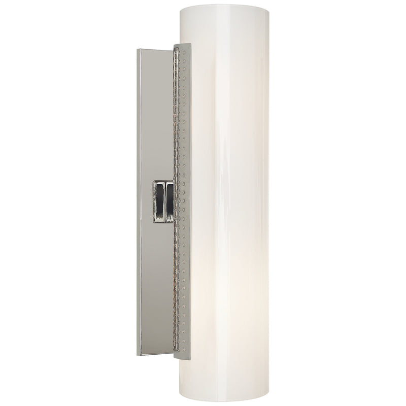 Kelly Wearstler Precision Cylinder Sconce in Polished Nickel with White Glass Wall Light W4" x H14"