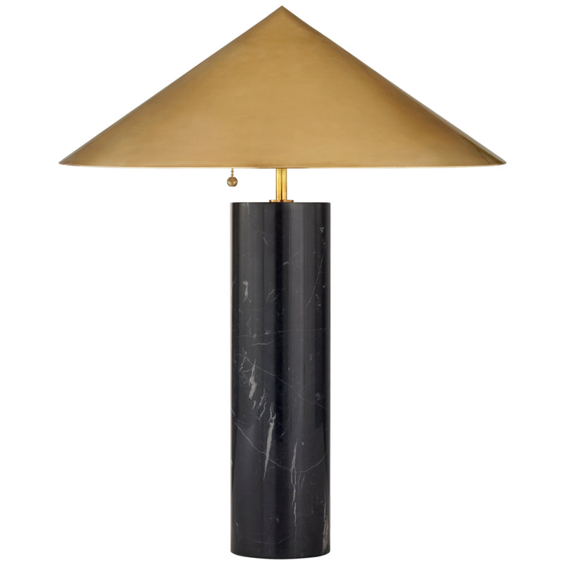 Kelly Wearstler Minimalist Medium Table Lamp in Black Marble with Antique-Burnished Brass Shade W20" x H25"