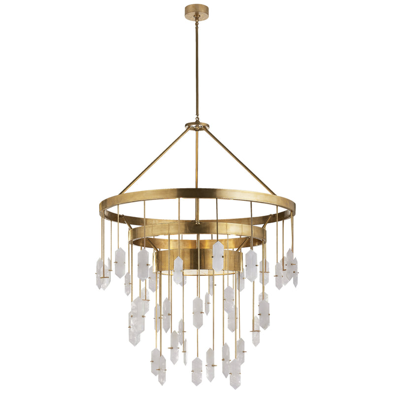 Kelly Wearstler Halcyon Large Three Tier Chandelier in Antique-Burnished Brass with Quartz Ceiling Light W36"