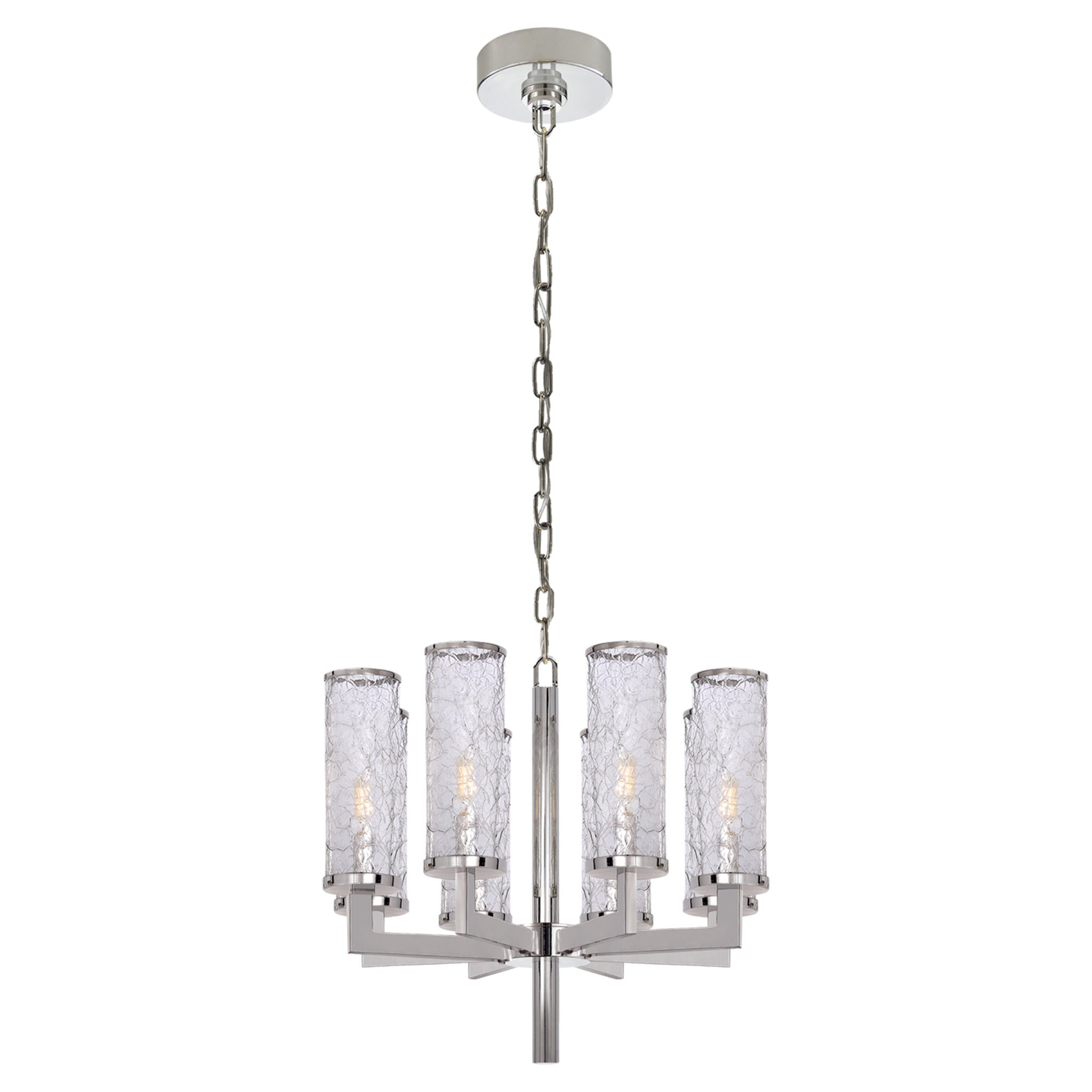 Kelly Wearstler Liaison Single Tier Chandelier in Polished Nickel with Crackle Glass Ceiling Light W20.5"