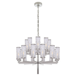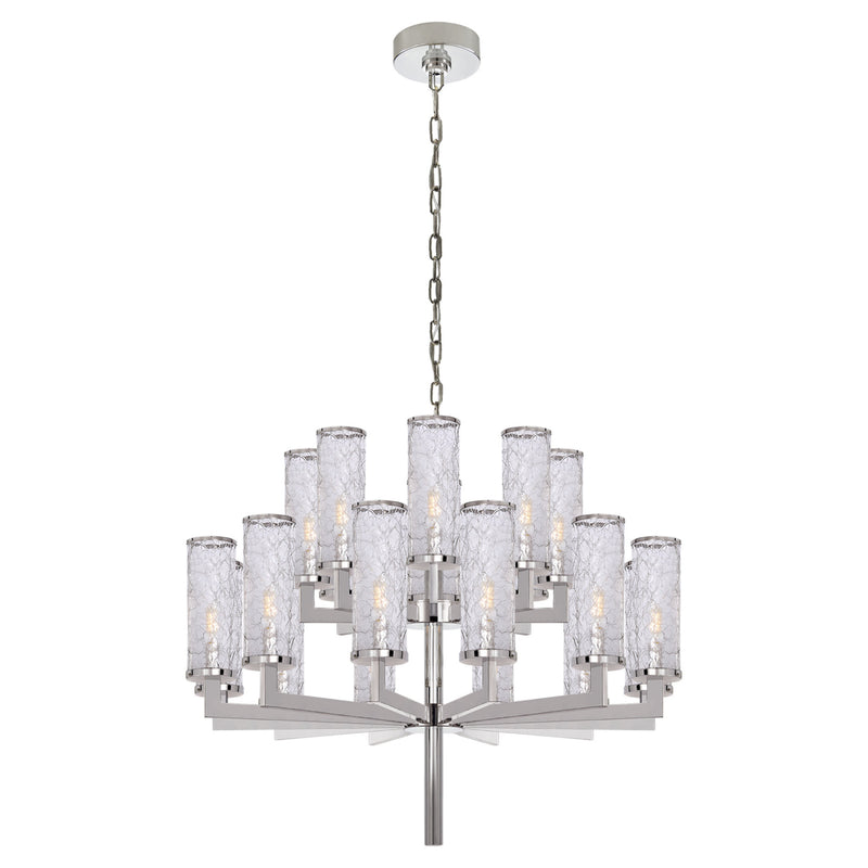 Kelly Wearstler Liaison Double Tier Chandelier in Polished Nickel with Crackle Glass Ceiling Light W34"