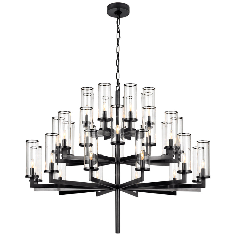 Kelly Wearstler Liaison Triple Tier Chandelier in Bronze with Clear Glass Ceiling Light W47.5"