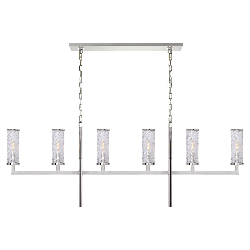 Kelly Wearstler Liaison Large Linear Chandelier in Polished Nickel with Crackle Glass Ceiling Light W60" x H22.5"