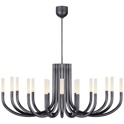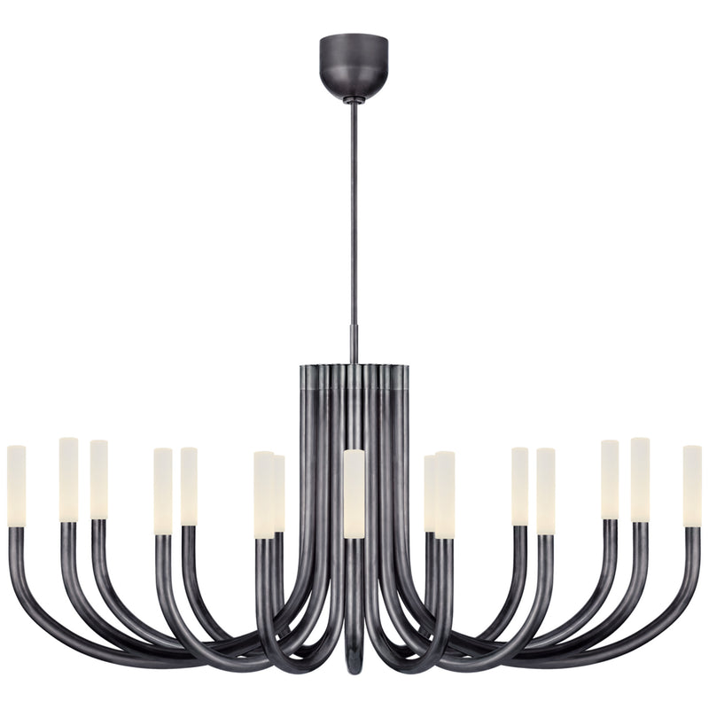 Kelly Wearstler Rousseau Large Oval Chandelier in Bronze with Etched Crystal Ceiling Light W50"