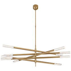 Kelly Wearstler Rousseau Grande Ten Light Articulating Chandelier in Antique-Burnished Brass with Seeded Glass Ceiling Light W3" - 50"