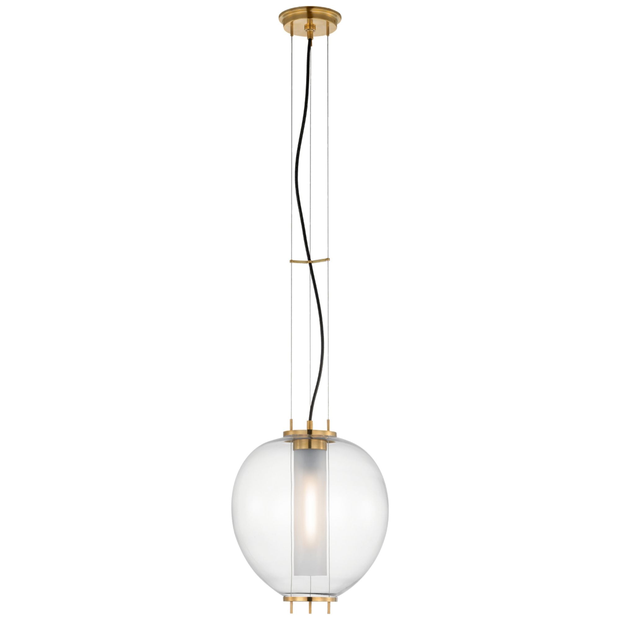 Ray Booth Taro 13" Lantern in Antique-Burnished Brass with Clear Glass Ceiling Light W13"