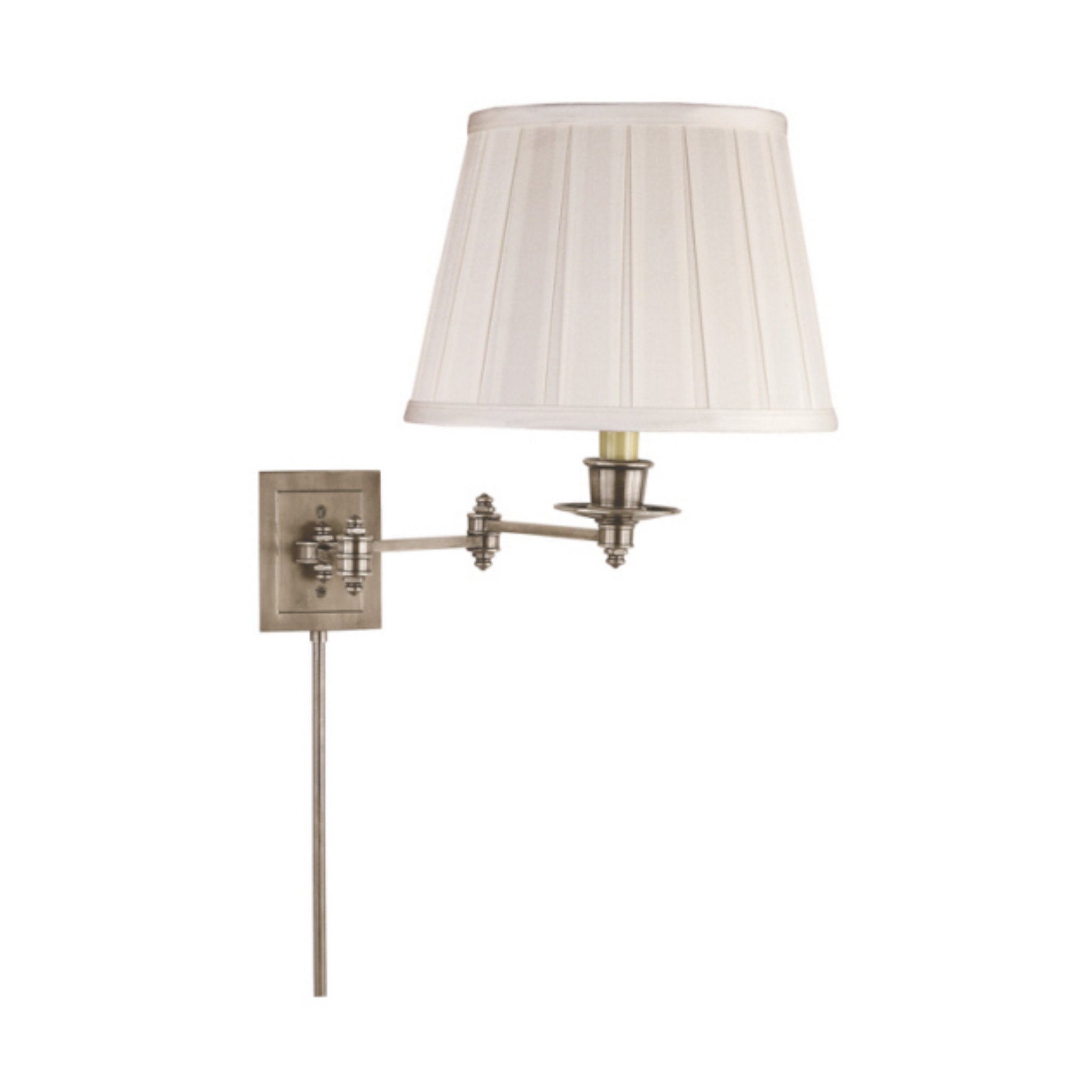 Visual Comfort Triple Swing Arm Wall Lamp in Antique Nickel with Silk Shade Wall Light W17.5" x H13"