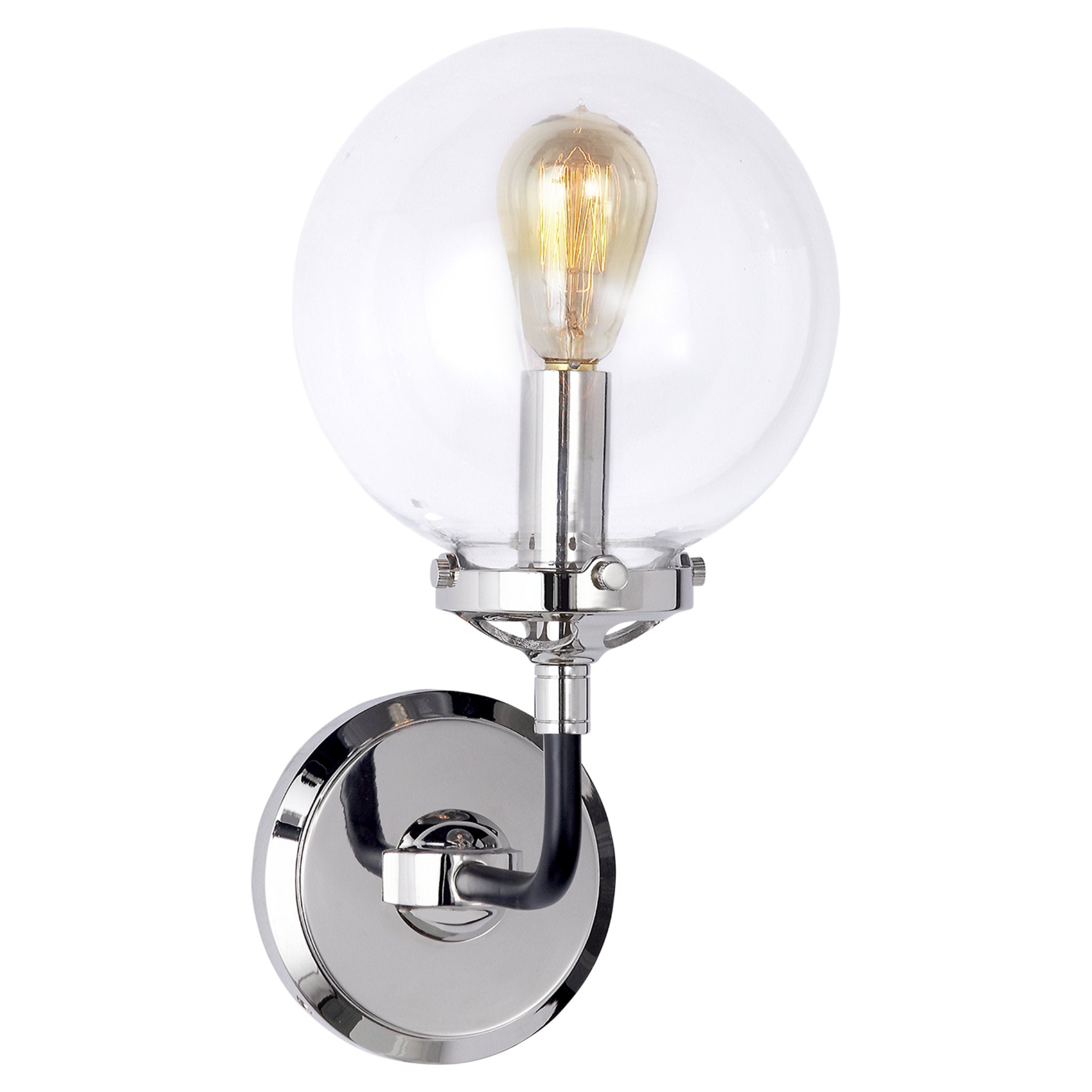Ian K. Fowler Bistro Single Light Sconce in Polished Nickel and Black with Clear Glass Wall Light W6" x H11.75"