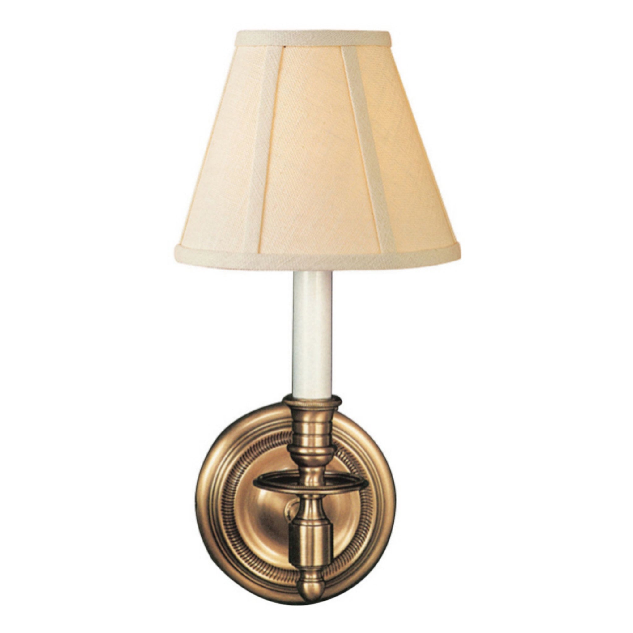 Visual Comfort French Single Sconce in Hand-Rubbed Antique Brass with Linen Shade Wall Light W6" x H12"