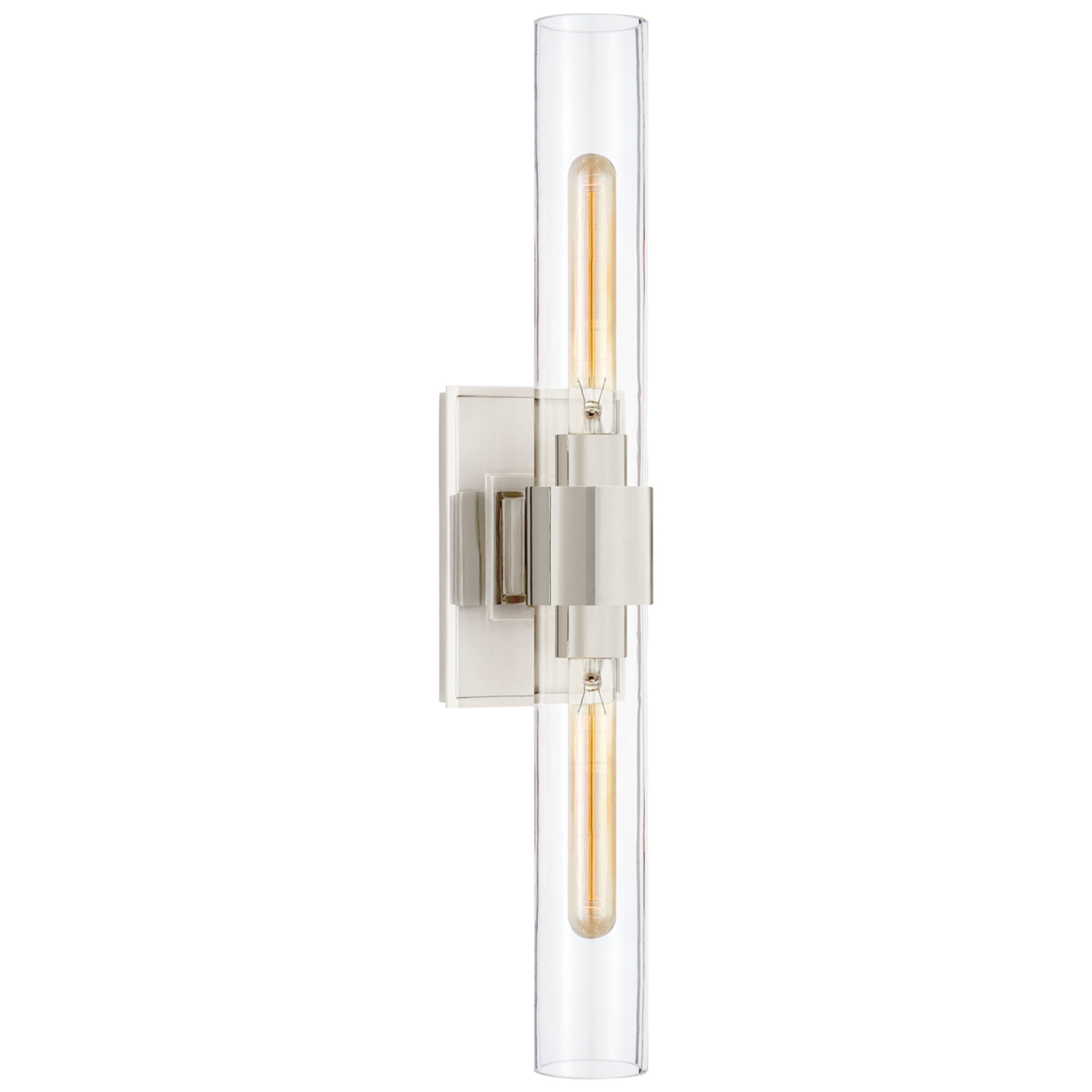 Ian K. Fowler Presidio Petite Double Sconce in Polished Nickel with Clear Glass Wall Light W4.75" x H23"