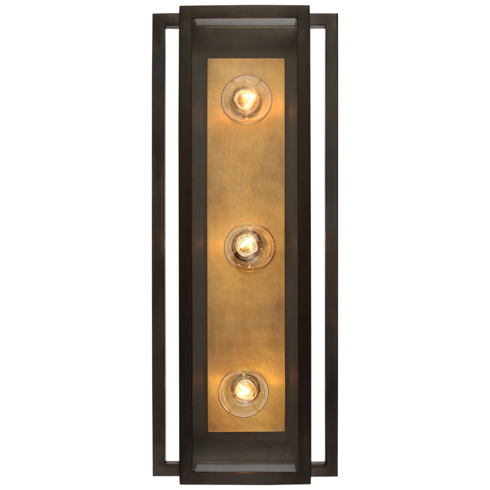 Ian K. Fowler Halle 18" Vanity Light in Bronze and Hand-Rubbed Antique Brass with Clear Glass Wall Light W7.25" x H18"