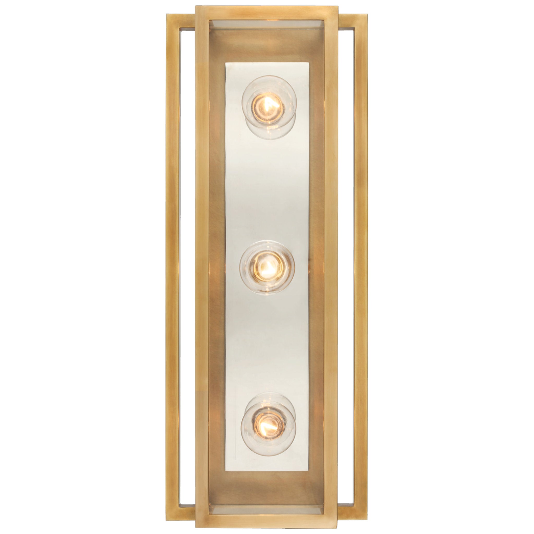 Ian K. Fowler Halle 18" Vanity Light in Hand-Rubbed Antique Brass and Polished Nickel with Clear Glass Wall Light W7.25" x H18"