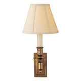 Visual Comfort French Single Library Sconce in Hand-Rubbed Antique Brass with Linen Shade Wall Light W6" x H12"