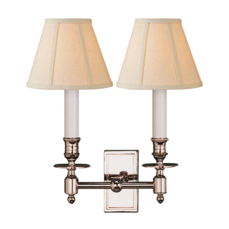 Visual Comfort French Double Library Sconce in Polished Nickel with Linen Shades Wall Light W12" x H12"
