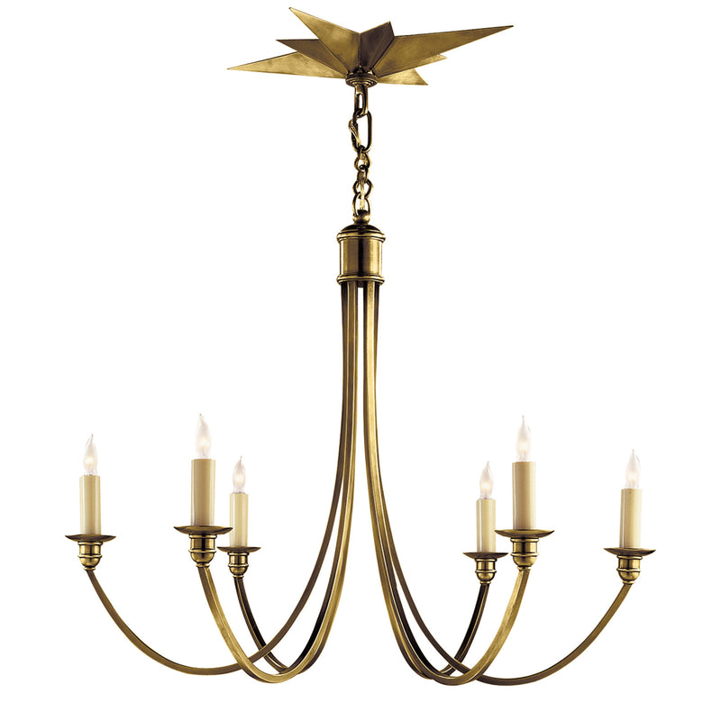 Eric Cohler Venetian Medium Chandelier in Hand-Rubbed Antique Brass Ceiling Light W27" x H23"