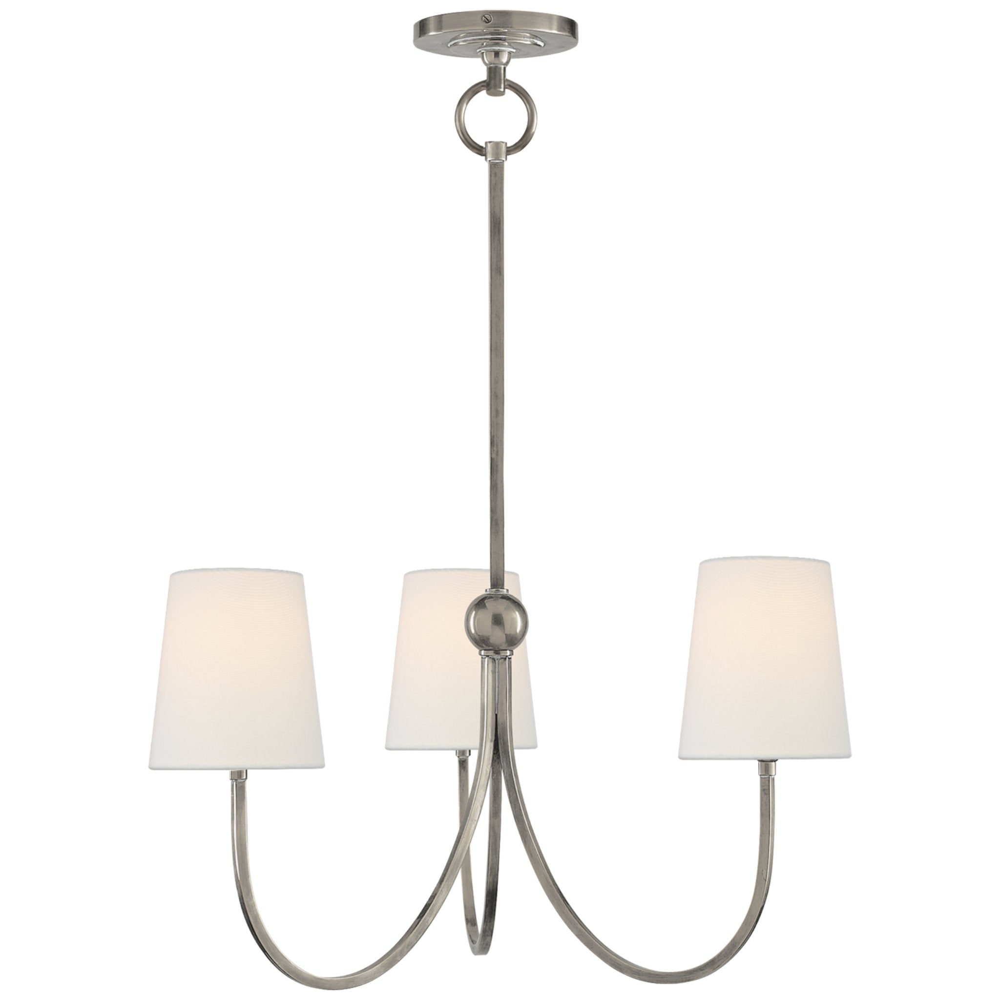 Thomas O'Brien Reed Small Chandelier in Antique Nickel with Linen Shades Ceiling Light W20"