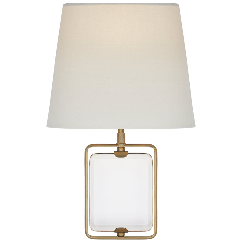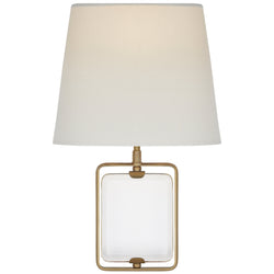 Suzanne Kasler Henri Framed Jewel Sconce in Crystal and Hand-Rubbed Antique Brass with Linen Shade Wall Light W9.5" x H15.25"