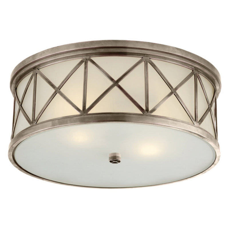Suzanne Kasler Montpelier Large Flush Mount in Antique Nickel with Frosted Glass Ceiling Light W16" x H6"
