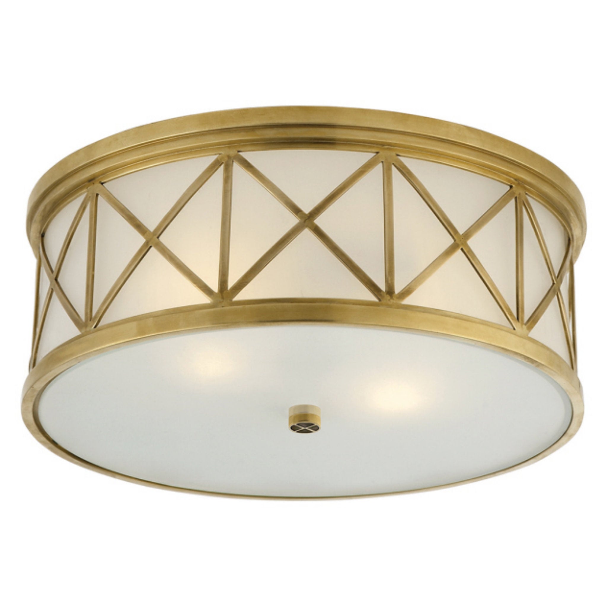 Suzanne Kasler Montpelier Large Flush Mount in Hand-Rubbed Antique Brass with Frosted Glass Ceiling Light W16" x H6"