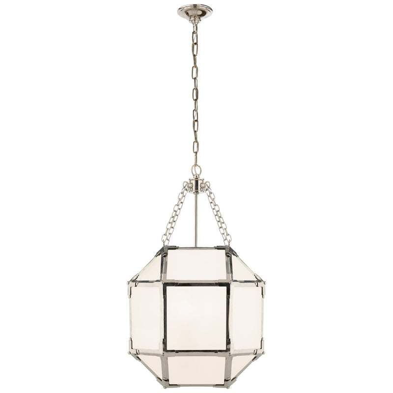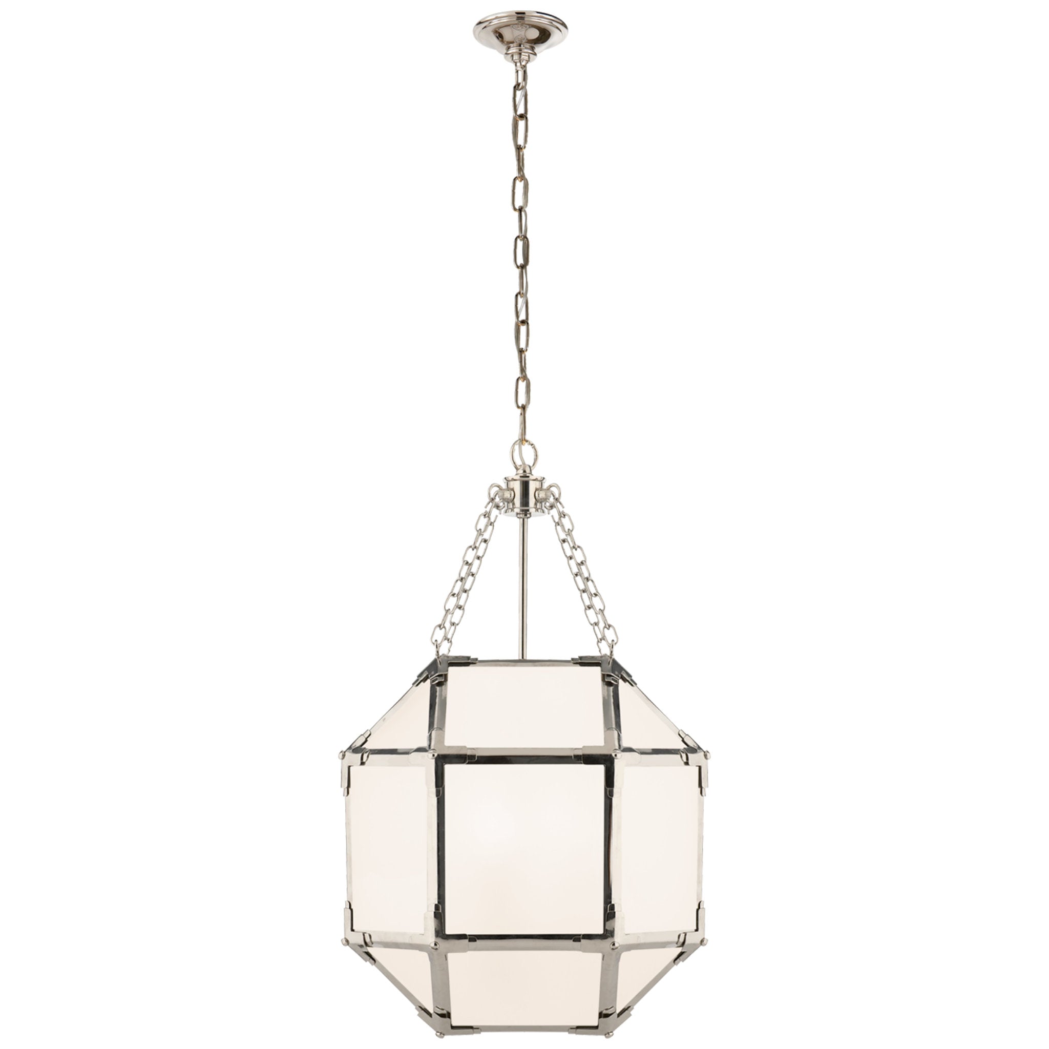 Suzanne Kasler Morris Small Lantern in Polished Nickel with White Glass Ceiling Light W13.5" x H21.5"
