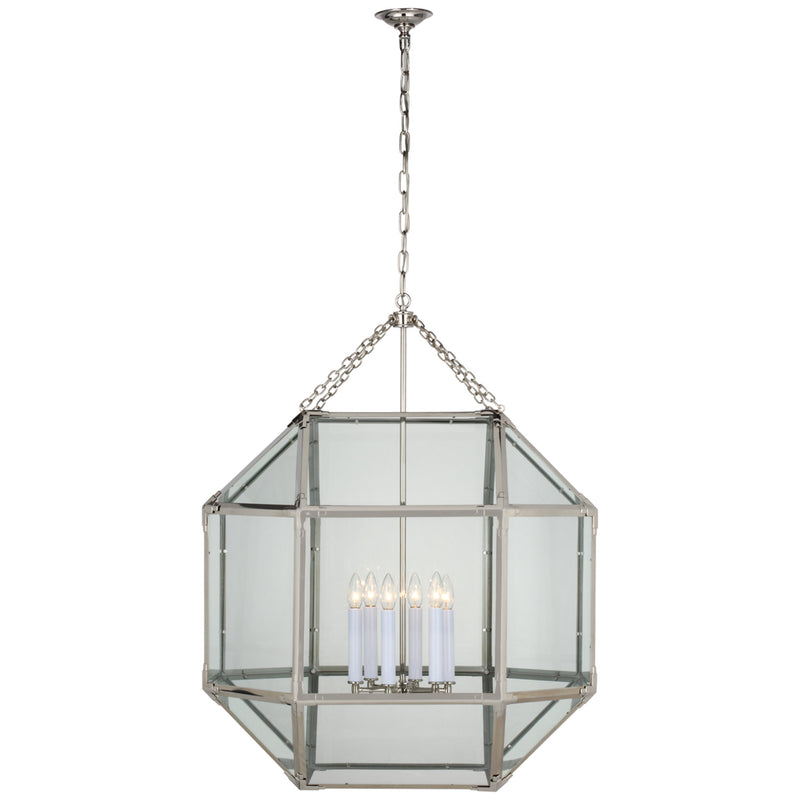 Suzanne Kasler Morris Grande Lantern in Polished Nickel with Clear Glass Ceiling Light W30.5" x H39.25"