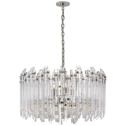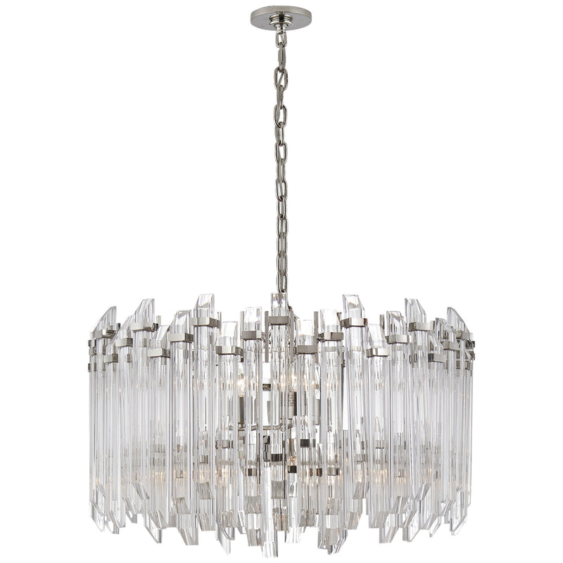 Suzanne Kasler Adele Large Wide Drum Chandelier in Polished Nickel with Clear Acrylic Ceiling Light W28.25" x H20"