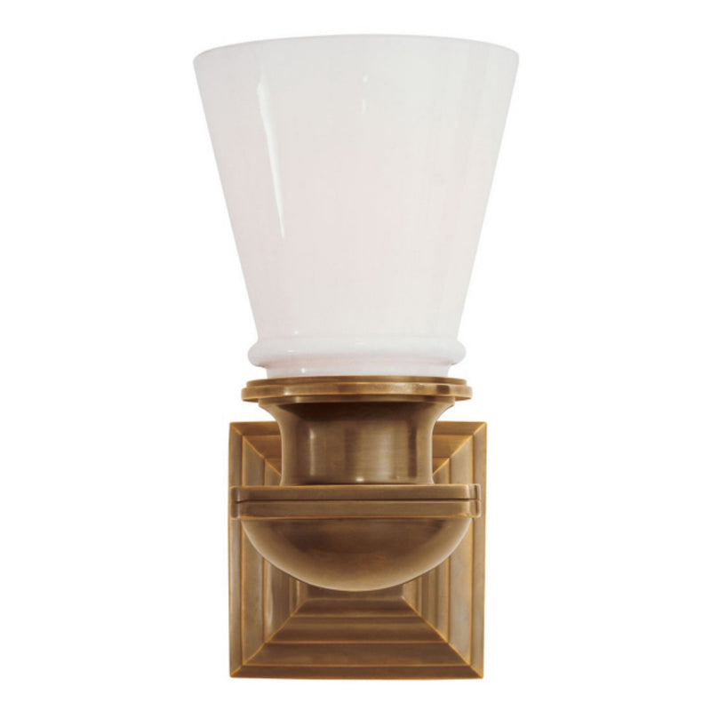 Chapman & Myers New York Subway Single Light in Hand-Rubbed Antique Brass with White Glass Wall Light W5" x H9.75"
